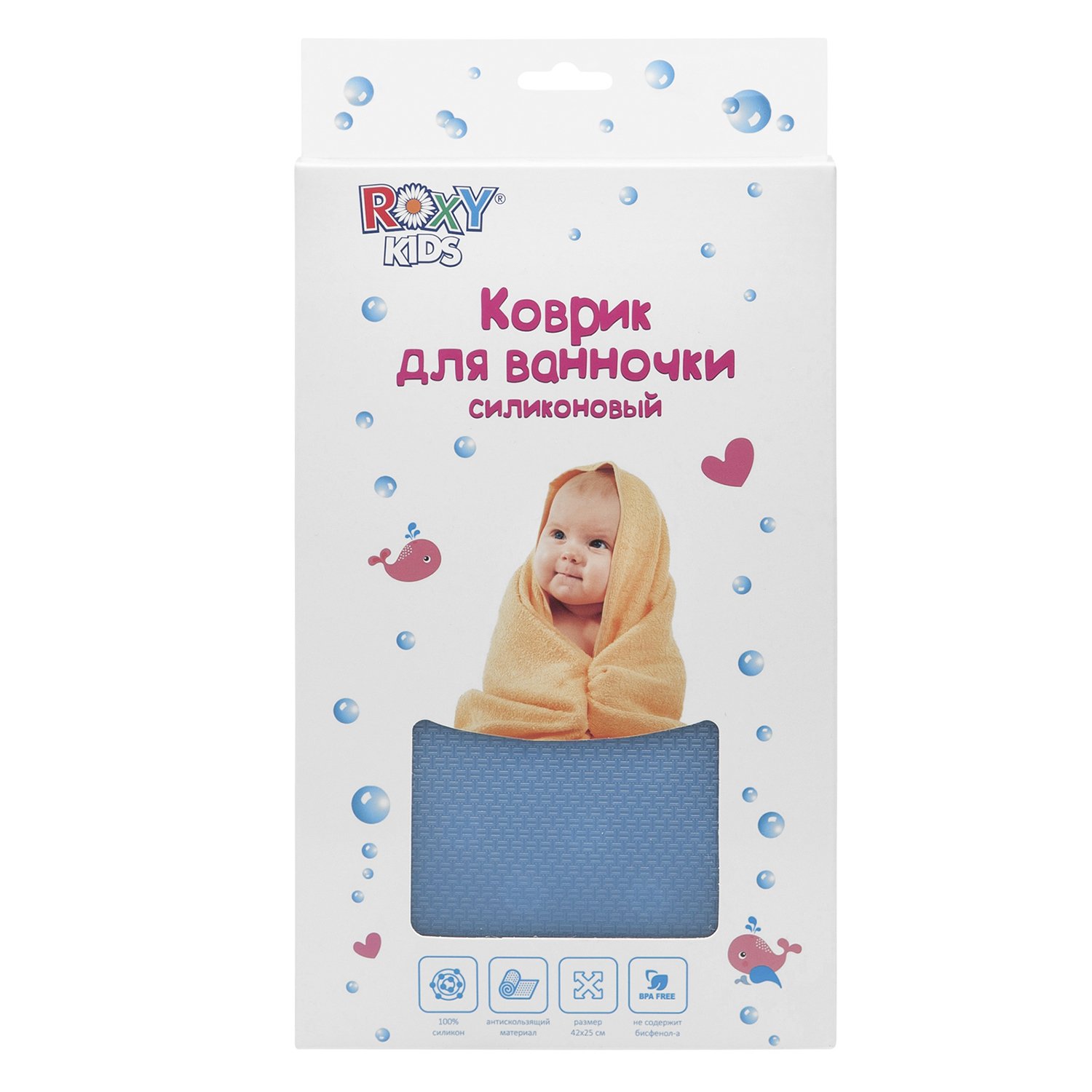 Covor silicon anti-alunecare ROXY-KIDS p/u baie p/u copii. Culoare albastra