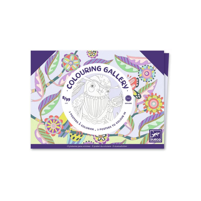 Mapa cu 3 postere de colorat Pasari Djeco