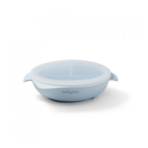 Placa de silicon cu ventuza si capac blue Babyono