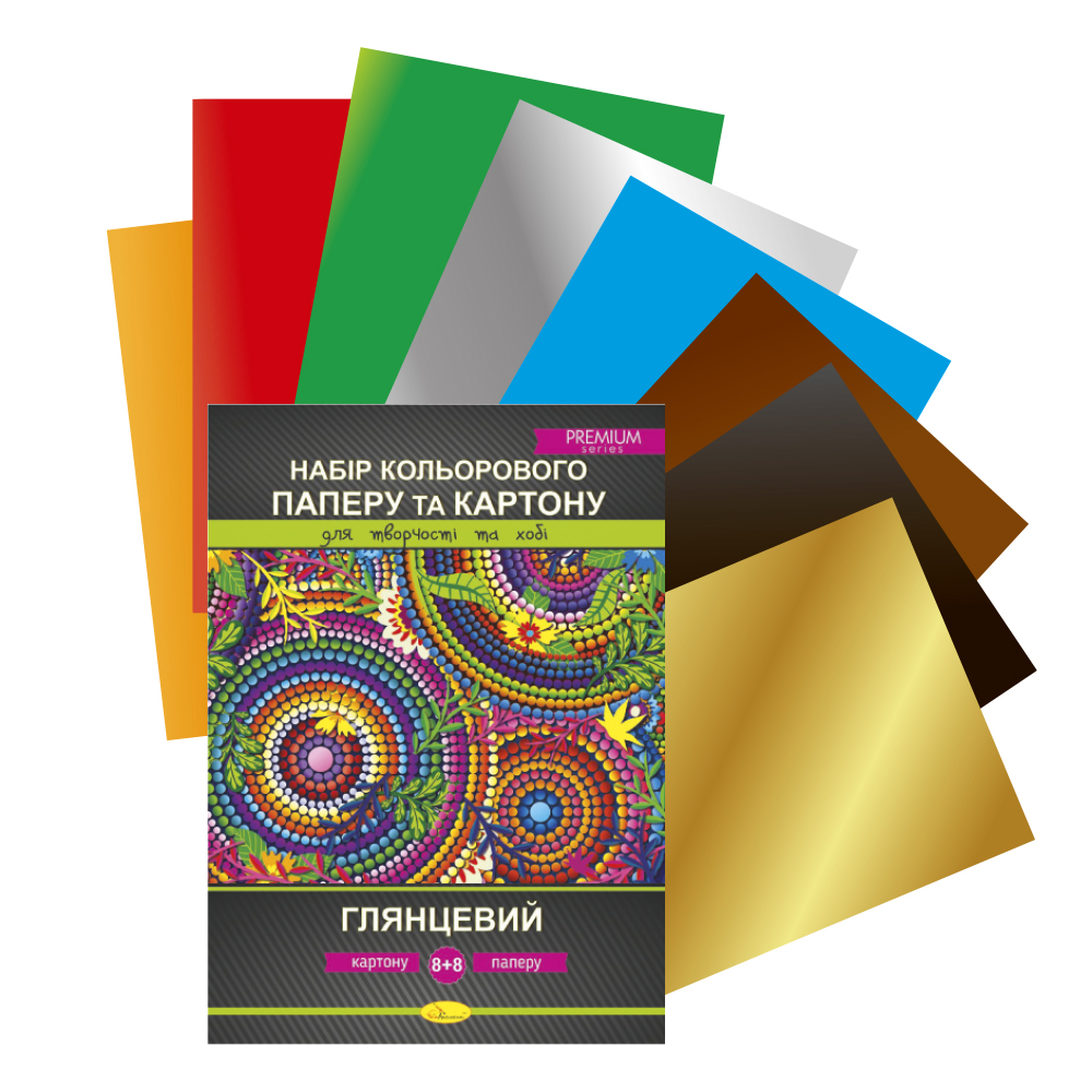 Set carton colorat + hartie colorata A4 lucioasa 8+8 foi Premium APELSIN